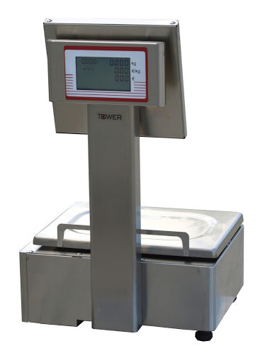La bilancia TOWER ETICHETTATRICE della Waage è una bilancia con etichettatrice adesiva  e doppio display, perfetta per le attività che non possono fare a meno di etichettare i prodotti e tenere passo di tutta la tracciabilità con le proprio etichette, anche grazie alla pesatura universale 12-30kg che gli consente di pesare ogni tipo di genere alimentare.